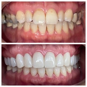 Porcelain veneers can restore the surface of your teeth by making them smooth and stain free again. Porcelain veneers, Lumineers and Dental Laminates can make crooked teeth look perfectly straight in two weeks. They can make short teeth longer, old teeth younger looking, and yellow teeth much whiter without having to bleach and re-bleach your teeth to keep them white. With porcelain veneers, you won’t need BriteSmile, Zoom, Crest Strips, or any of the chemicals that are in them. Porcelain veneers can be a better choice that lasts. Porcelain Veneers are biologically compatible and do not interact with the body.